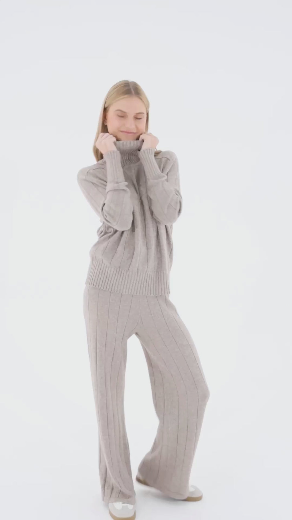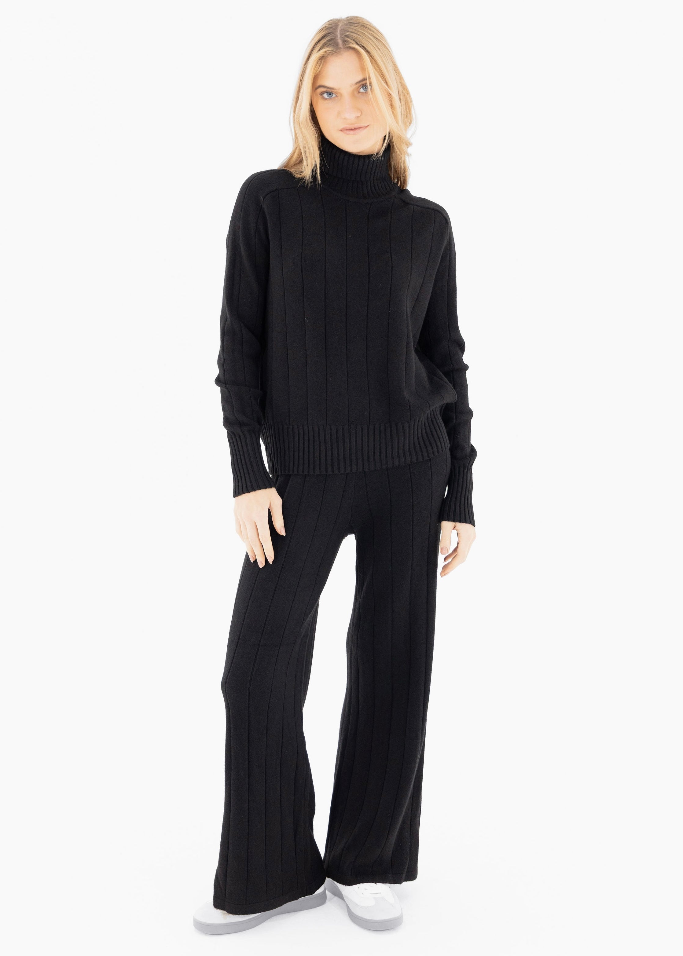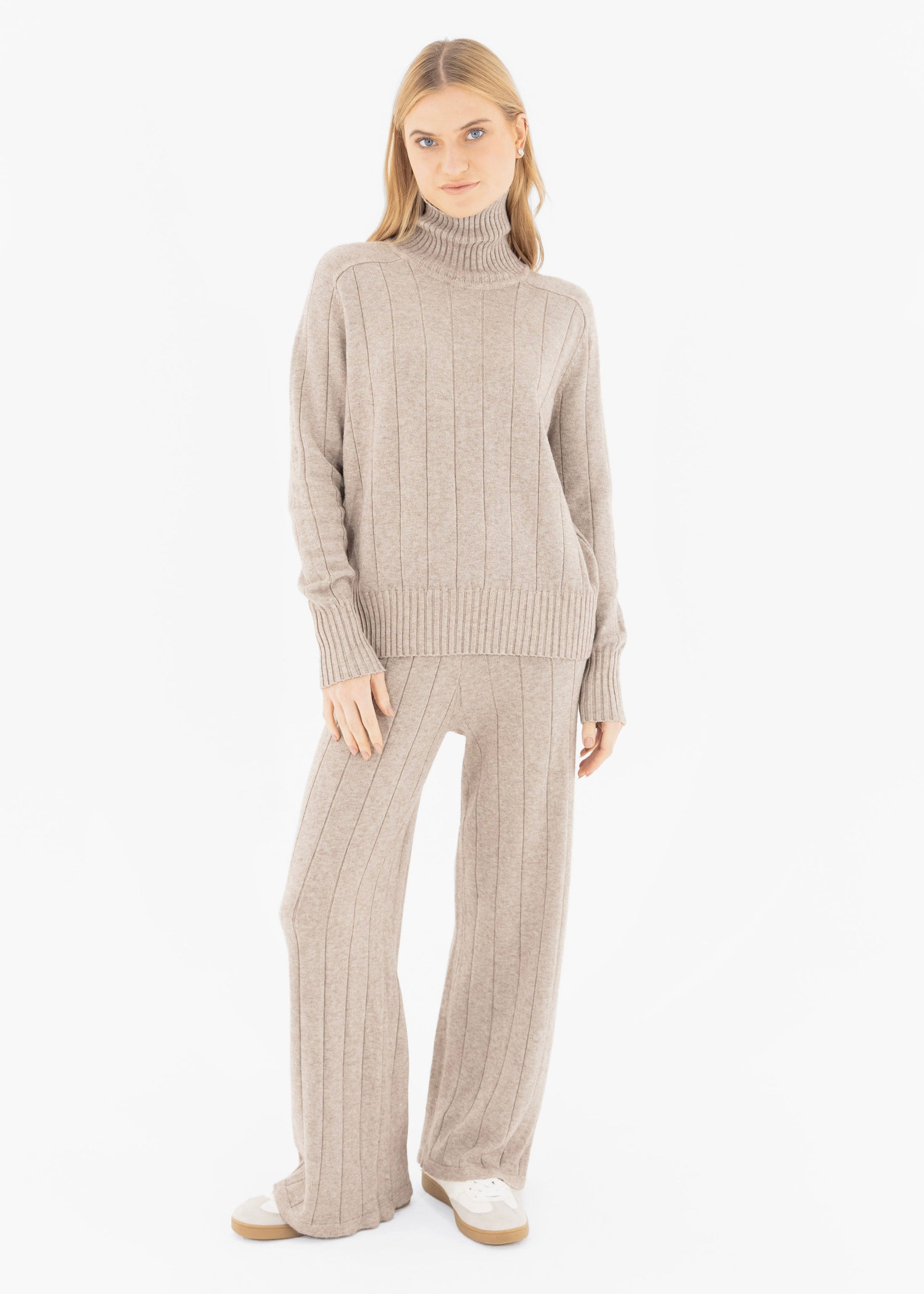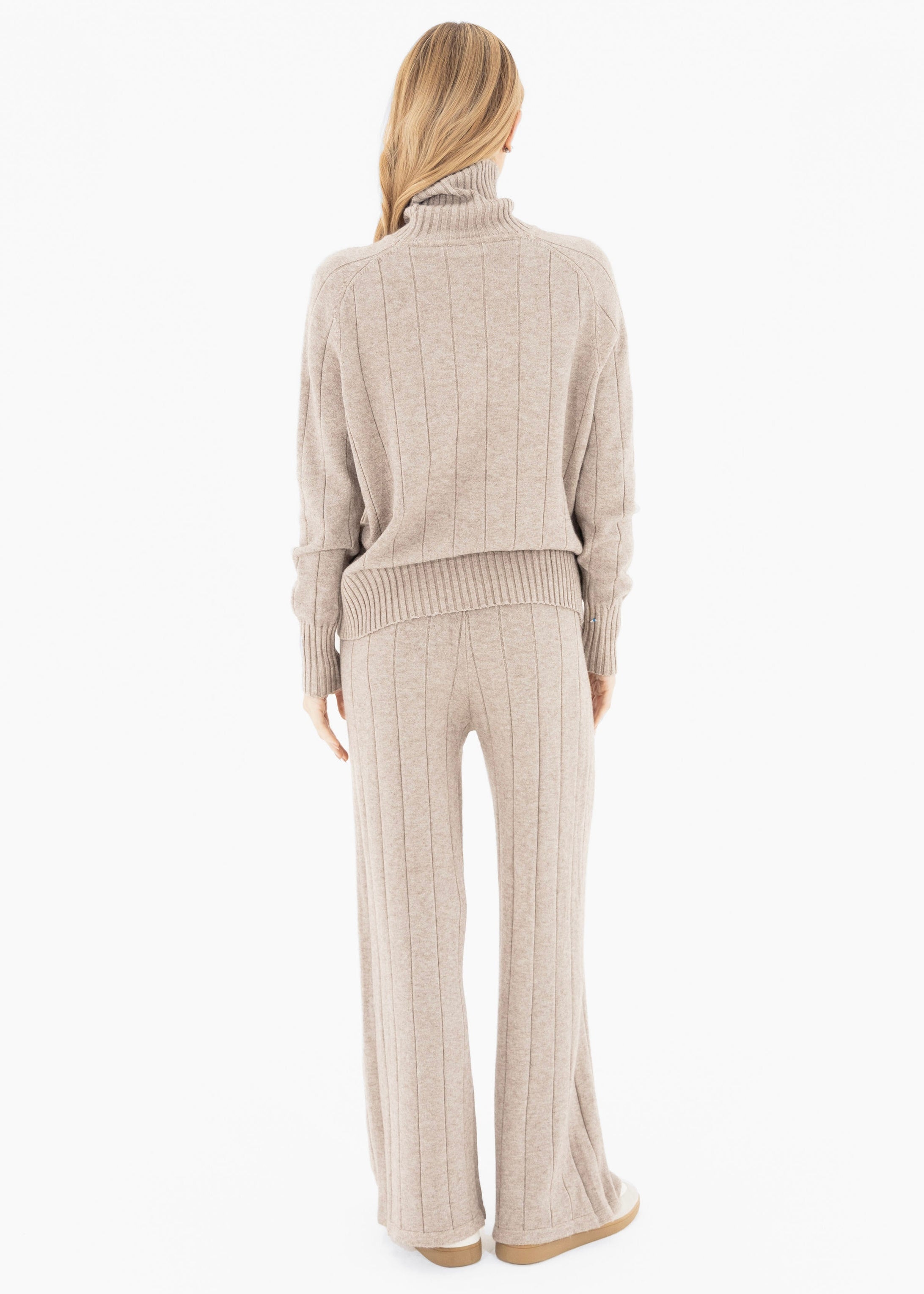 A simple, comfy look that works anywhere. This set features a soft turtleneck sweater and relaxed-fit pants—perfect for coffee runs, chill days, or travel.